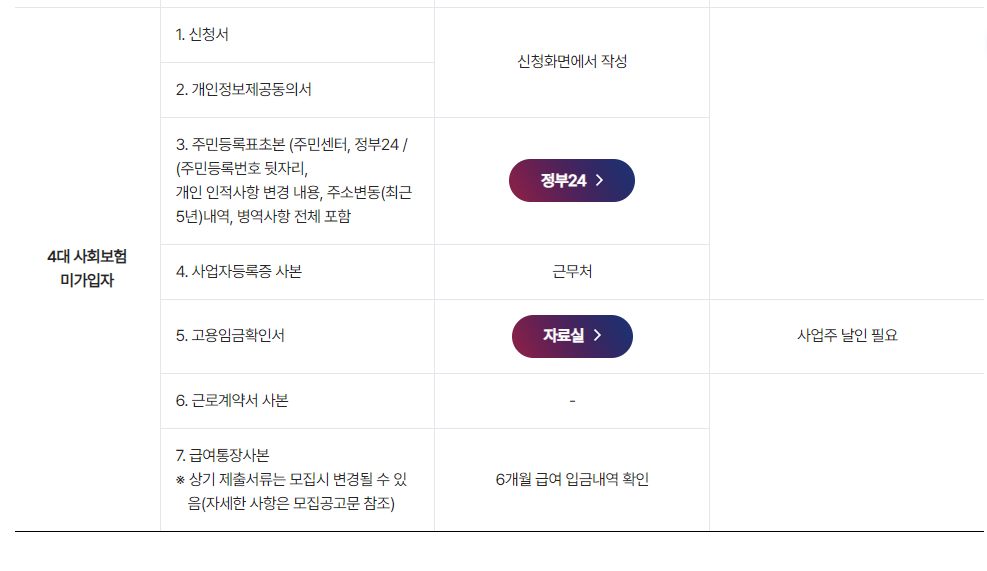 - 근로계약서 및 4대보장 가입 확인서