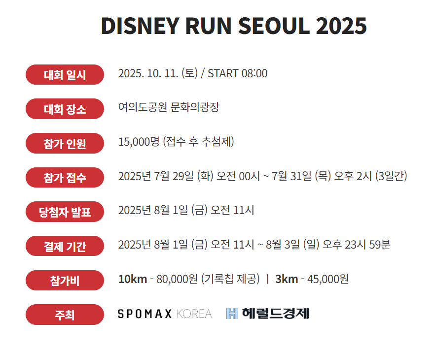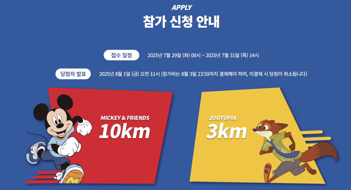 디즈니런 서울 2025는 선착순이 아니라 추첨제로 진행됩니다. 참가 희망자는 반드시 공식 웹사이트에서 신청을 완료해야 합니다.