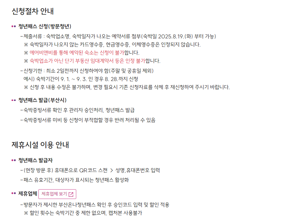 | 조건 | 부산 1박 이상 숙박 예약 증빙 필수 |