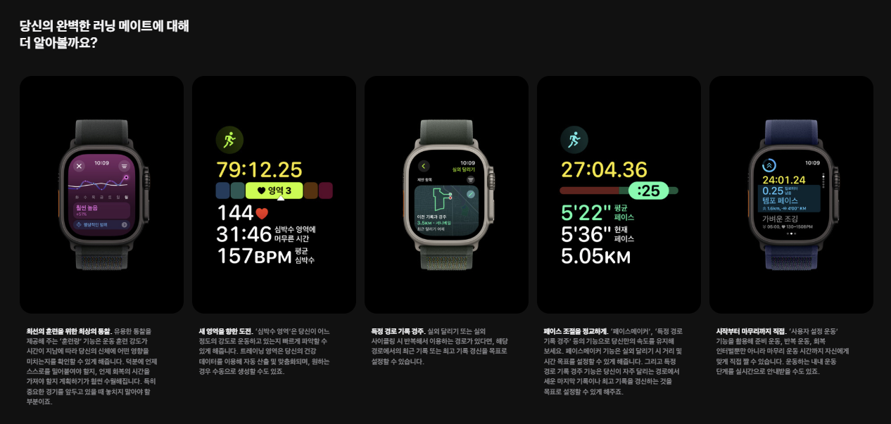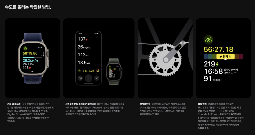 👉 일반 애플워치보다 2배 이상 밝고, 강인하며, 오래갑니다. 특히 하이킹·트레일 러닝·수중 스포츠에 최적화된 하드웨어입니다.
