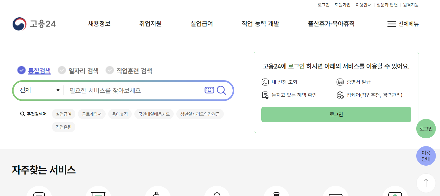• 고용24 또는 국민취업지원제도 홈페이지 접속