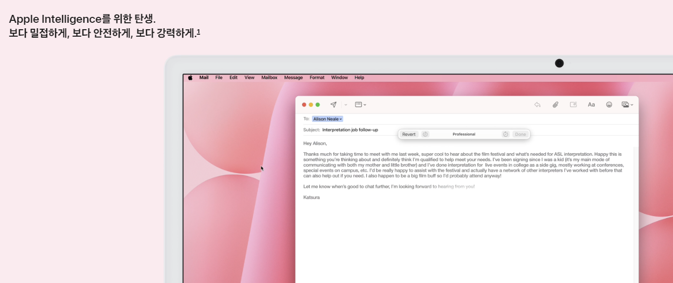 - Apple Intelligence 기능(예: 이메일 작성 보조, 사진 정리, Siri 고도화)에서 실질적 체감 향상