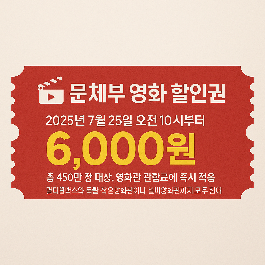 7월 25일부터 시작된 문화체육관광부의 ‘2025 여름 영화 할인 지원 사업’은 코로나 이후 위축된 영화 산업과 시민의 문화 향유를 동시에 지원하는 정책입니다.