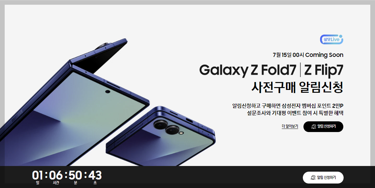 삼성은 예년과 마찬가지로 언팩 이벤트 당일 사전예약을 바로 오픈하며, 정식 출시는 약 2주 뒤인 7월 25일로 확정했습니다.