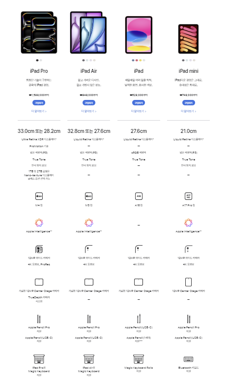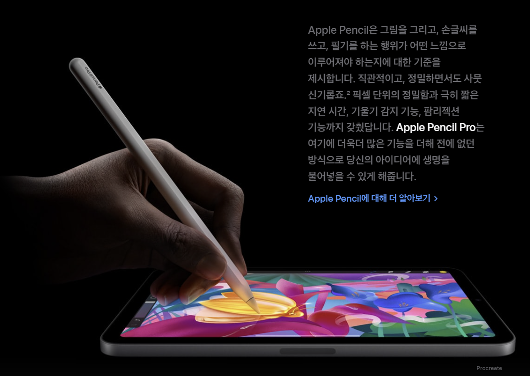 | Apple Pencil Pro 지원 | Magic Keyboard 미지원 |