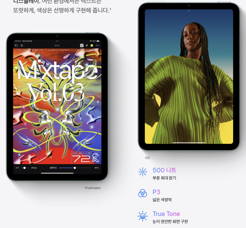- 기술: True Tone, 반사방지 코팅, 60Hz 고정 주사율