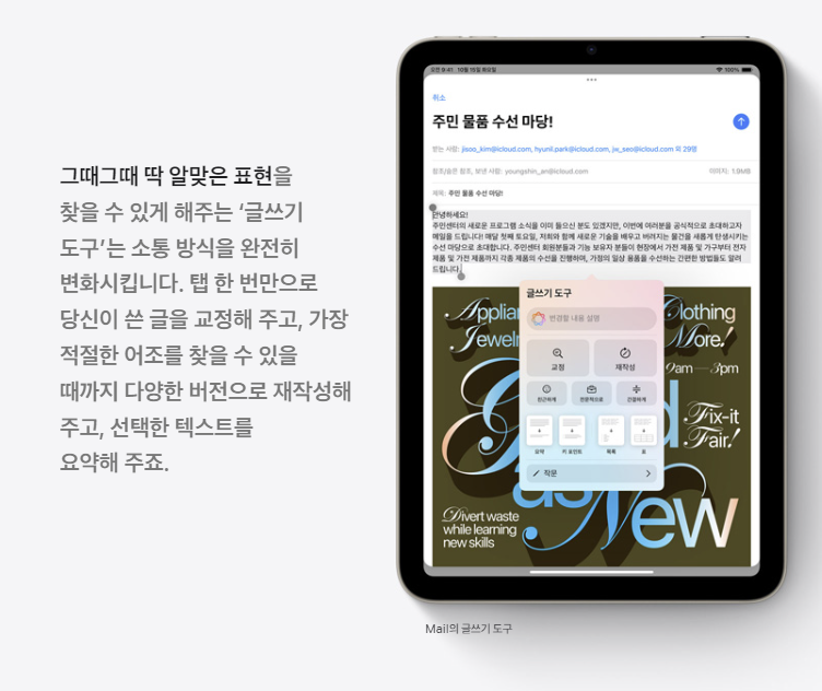 한 손으로 들 수 있는 태블릿에 Apple Intelligence를 탑재해, 이제는 단순한 미디어 소비용 기기를 넘어서고 있습니다.