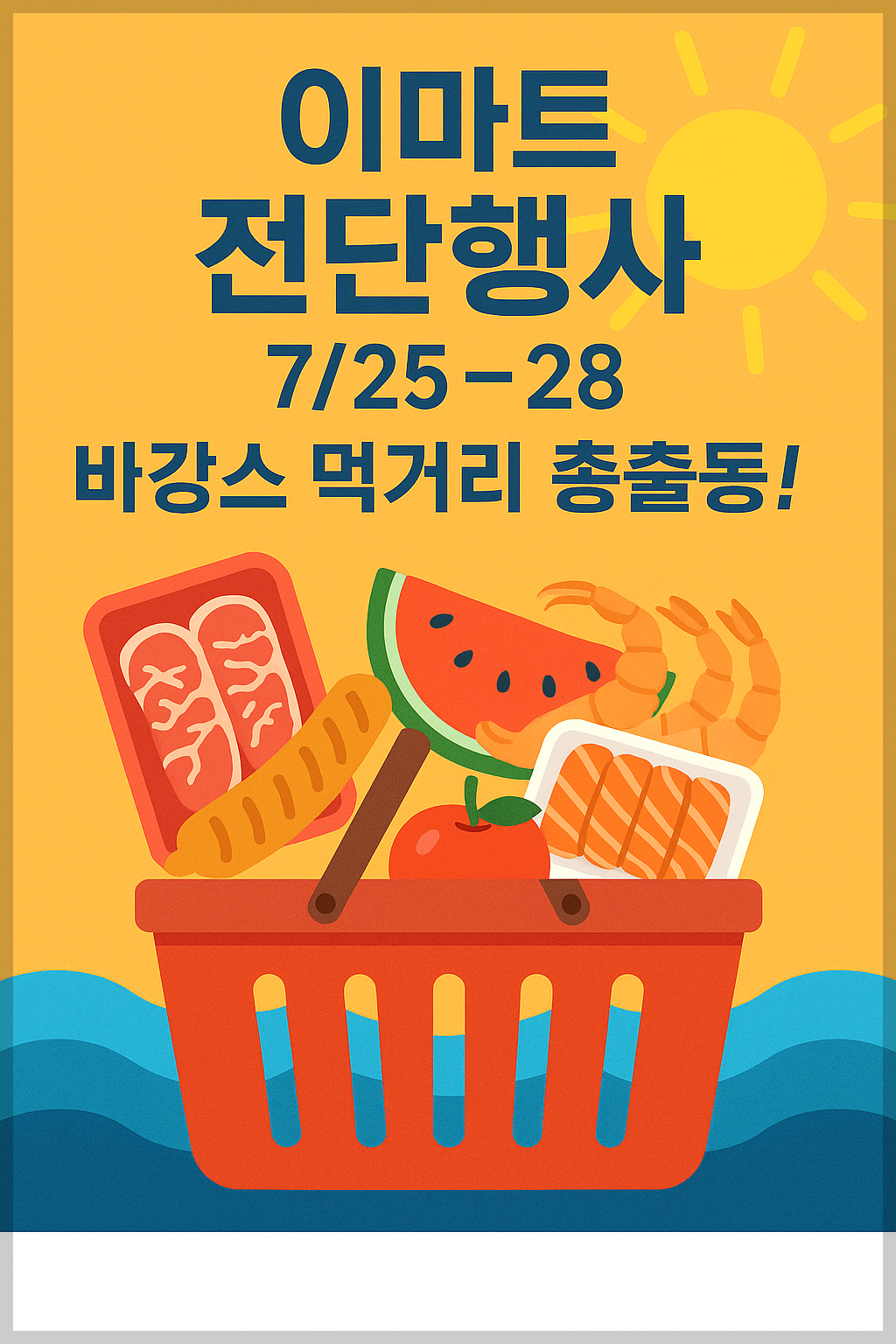 🛒 이번 주 이마트 전단행사 총정리 (7/25~7/28) - “바캉스 먹거리부터 생활용품까지, 지금이 장보기 타이밍!”