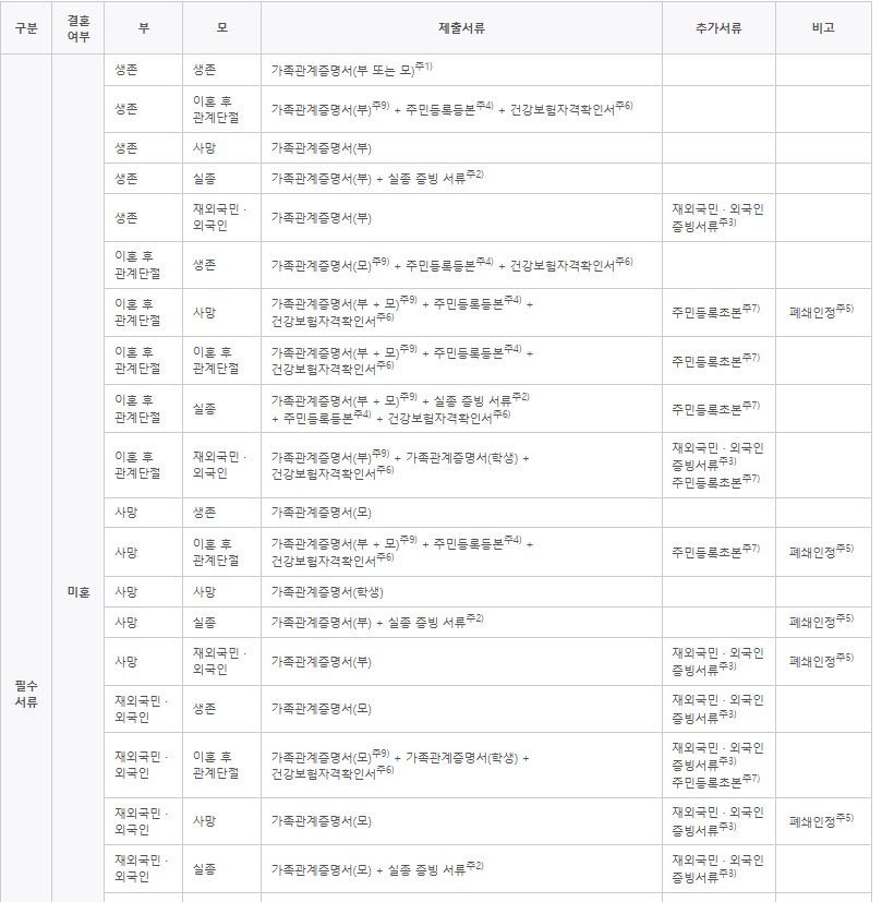 - 필요 서류 제출: 가족관계증명서, 소득 관련 서류 등